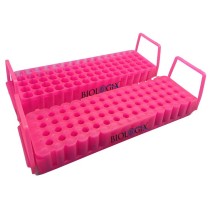 Rack bifacciale PP- 1 Lato 80 posti per microtubi da 1.5/2ml - 1 Lato 60 posti per microtubi 0.5/0.2ml, fuxia, non sterile.